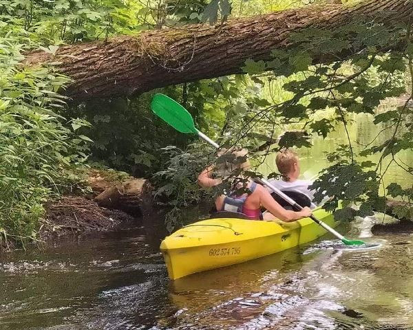 * POLE NAMIOTOWE w obszernym domowym ogrodzie z pełnym zapleczem sanitarnym /2xwc, cw, prysznic), kuchnią oraz wyposażonymi miejscami na ogniska/grilla * boisko trawiaste z bramkami do gry w piłkę nożną * noclegi w 3 pokojach gościnnych dla 6-8 osób * małą przystań wodną dla kajakarzy * SPŁYWY KAJAKOWE.