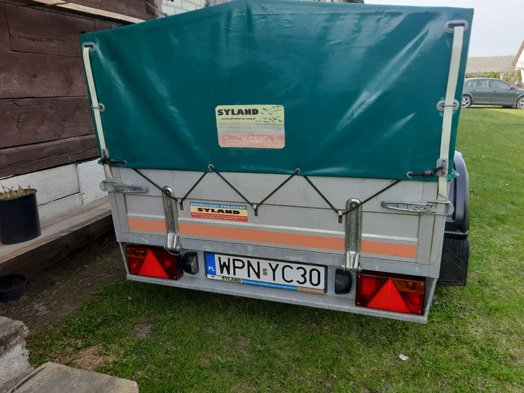 Na sprzedaż przyczepka renomowanego producenta marki SYLAND o wymiarach 200x130cm wyprodukowana w 2014 roku. Bardzo dobry stan wizualny jak na zdjęciach, oświetlenie sprawne, gotowa do użytkowania. Solidne zawieszenie na resorach+amortyzatory prowadzi się pewnie bez ładunku, nie podskakuje. Podłoga sklejka wodoodporna bez oznak zużycia.
