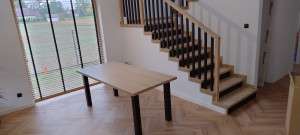 Schody drewniane dębowe, stoły drewniane, meble z drewna