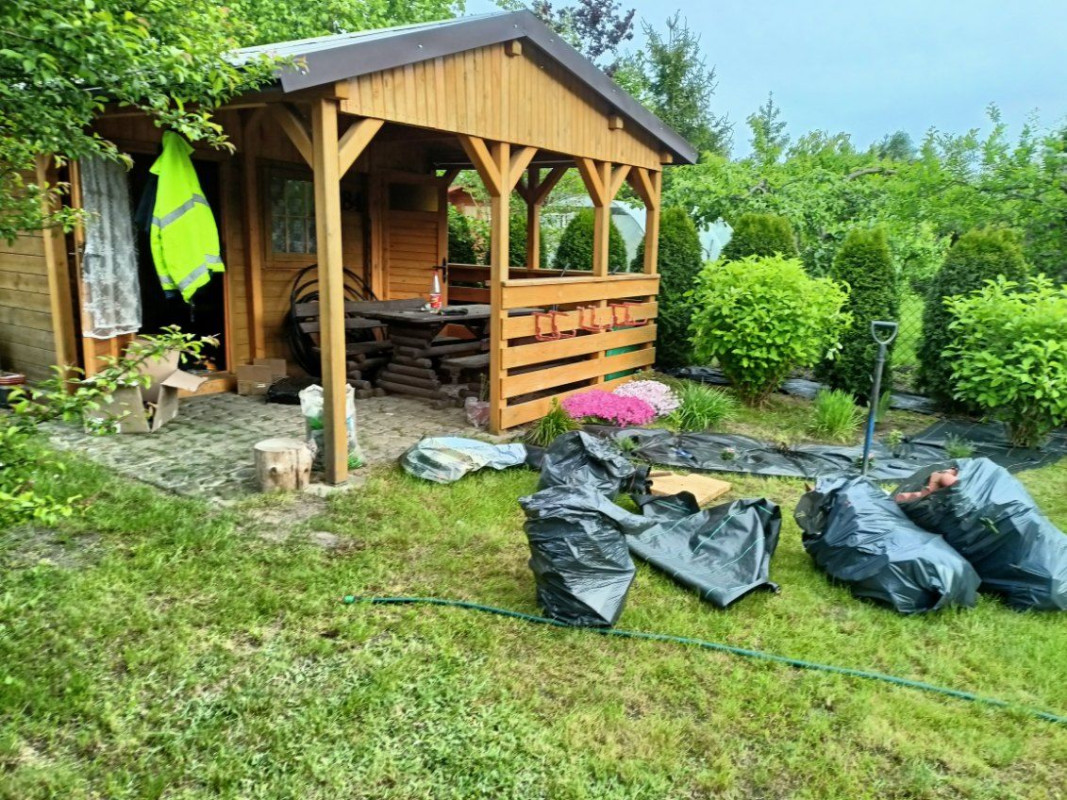 Sprzedam działkę ROD "Mazowsze" w Ostrowii Mazowieckiej, na działce jest domek drewniany w którym jest toaleta i pomieszczenie na różne narzędzia,miejsce na hamak. Na działce są nasadzenia kilka drzew, tuje, kilka innych roslin, hortensje duze.